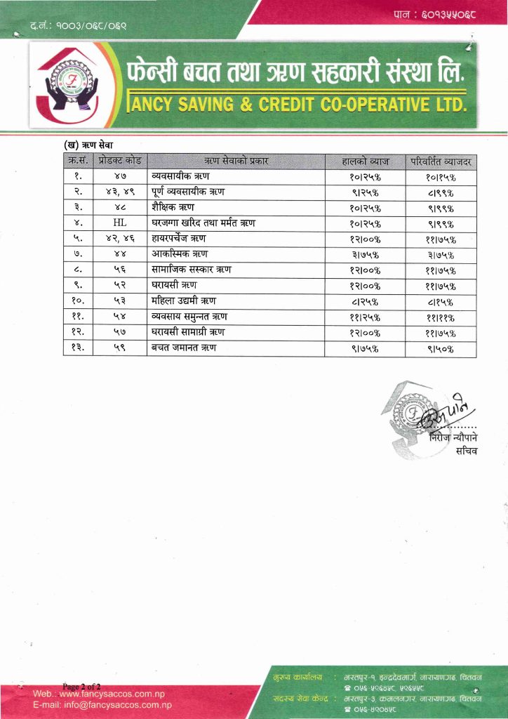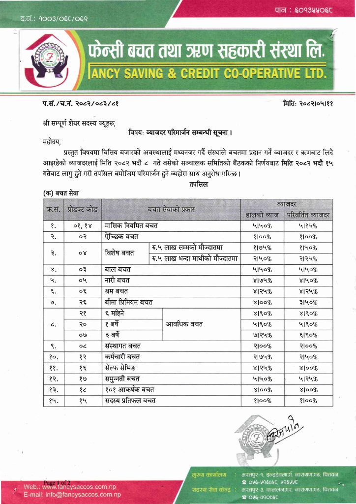व्याजदर परिमार्जन सम्बन्धी सूचना ।