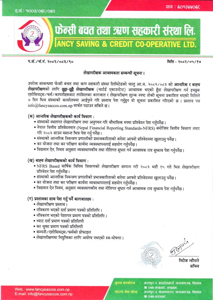 लेखापरीक्षक आवश्यकता सम्बन्धी सूचना ।